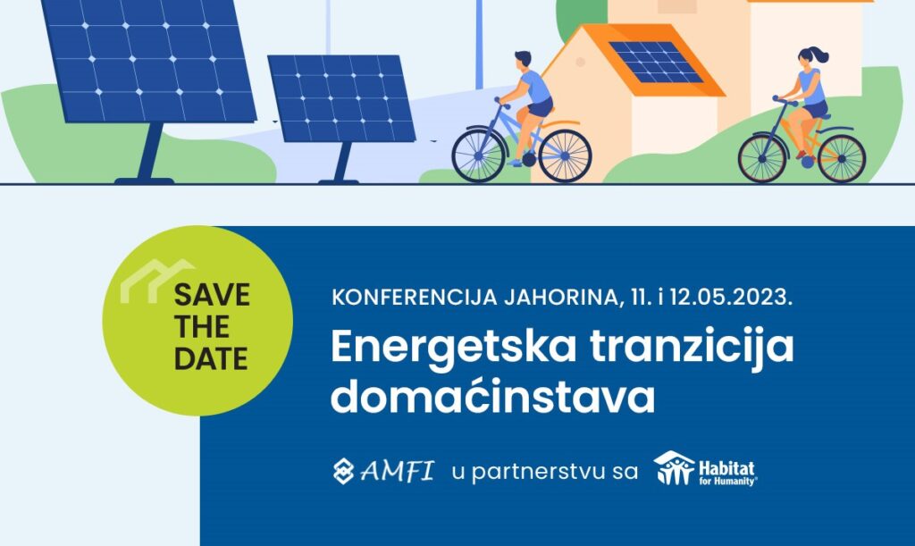 Udruženje mikrokreditnih organizacija u Bosni i Hercegovini – AMFI i Habitat for Humanity organiziraju dvodnevnu konferenciju o temi “Energetska tranzicija domaćinstava”. Konferencija koja počinje u četvrtak 11. maja/svibnja 2023. godine u Hotelu “Vučko” na Jahorini, okupit će domaće i međunarodne stručnjake koji će prenijeti znanja i iskustva o provedbi energetske tranzicije u domaćinstvima.