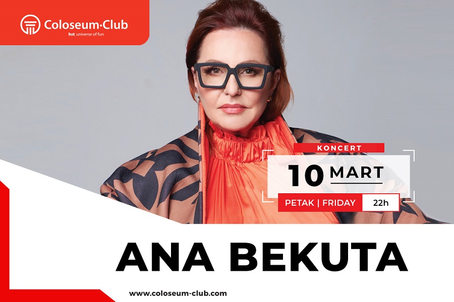 U petak, 10. marta sa početkom u 22.00 sata u Coloseum Clubu će održati koncert jedna od najvećih zvijezda narodne muzike Ana Bekuta. Svojim vanserijskim vokalnim sposobnostima, zasigurno će osvojiti sarajevsku publiku.