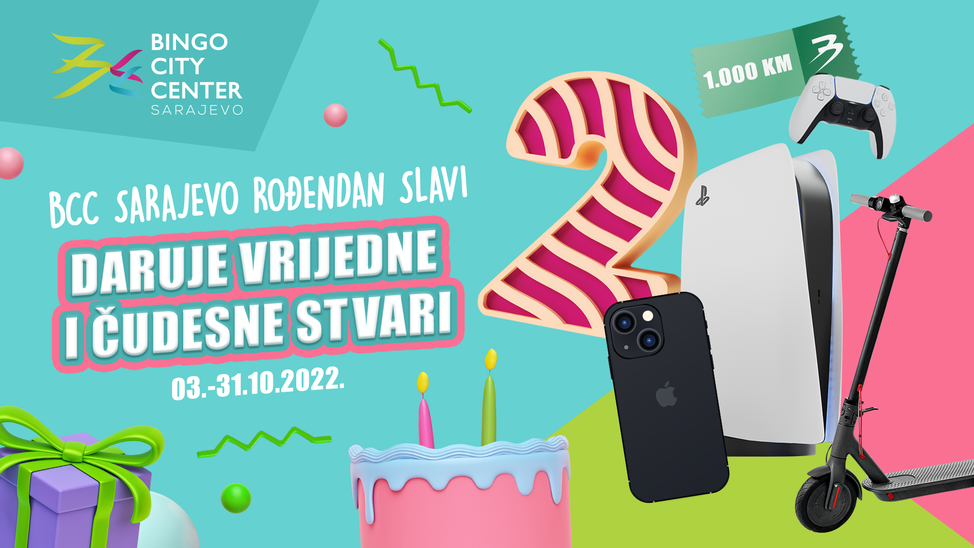 Bingo City Center Sarajevo u oktobru obilježava drugi rođendan ovog centra, a uposleni u ovom Centru smatraju da kad BCC Sarajevo rođendan slavi, treba da daruje čudesne stvari.