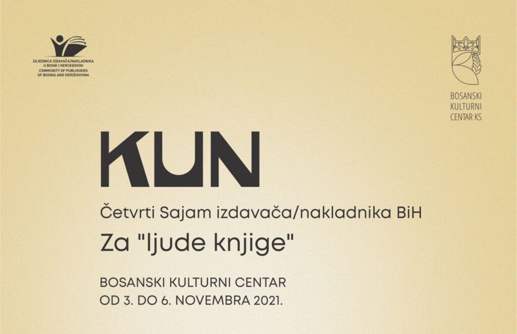 U organizaciji JU Bosanski kulturni centar Kantona Sarajevo i Zajednice izdavača/nakladnika u Bosni i Hercegovini, od 3. do 6. novembra 2021. godine, u Sarajevu će se održati četvrti Sajam izdavača/nakladnika Bosne i Hercegovine KUN (Knjige u nišama), pod sloganom: Za “ljude knjige”.
