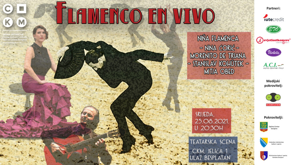 Flamenco – andaluzijska umjetnost – ovog se kolovoza vraća u Sarajevu. Nakon dugo vremena, ponovno će pred sarajevsku publiku stati zagrebačka pjevačica Nina Ćorić i slovenski plesač Mitja Obed dok će se publici prvi puta predstaviti slovački flamenco gitarista Morenito de Triana.