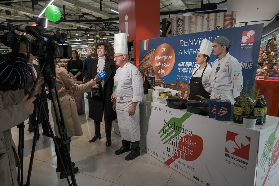 “Zadovoljstvo mi je da se naše partnerstvo sa Ambasadom Italije nastavlja i ove godine, te da smo imali čast danas ugostiti NJE.E. Marco Di Ruzza, italijanskog ambasadora u BiH. Vjerujem da smo zahvaljujući visokim standardima brenda Mercator uspjeli kroz ovaj projekat adekvatno prezentirati najbolje što nudi tradicionalna italijanska kuhinja, te sam siguran da je današnji događaj ponudio svim posjetiteljima zanimljiv susret sa segmentima italijanske kulture i tradicije u kojima smo svi zajedno uživali. “ – izjavio je Haris Arnautović, rukovoditelj Službe marketing Mercatora.