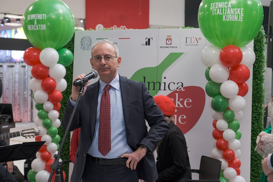 „Veoma smo sretni što je i ove godine Italijanska ambasada u Sarajevu, zajedno sa Agencijom ICE nadležnom za Bosnu i Hercegovinu, obnovila svoje čvrsto partnerstvo sa Mercator grupom u okviru „Sedmice italijanske kuhinje u BiH“. Kao što znate, ovo je jedna od najpraćenijih i najomiljenijih revija bosanskohercegovačke javnosti, od onih koje svake godine organizujemo u cilju promocije italijanske kulture i italijanskog načina života u BiH. Za nas Italijane, gastronomija nije samo uživanje u dobroj hrani već je sinonim za kulturu, istoriju i umjetnost, ona znači otkrivanje teritorija, povezivanje ljudi, prevladavanje barijera i podjela, spajanje tradicije i inovacije s maštom i kreativnošću. Veliki protagonist ove godine je regija Puglia, sa juga Italije, koja savršeno spaja prekrasne ljepote tog teritorija s jednako izvanrednom i raznolikom kulinarskom ponudom.“ – izjavio je Marco Di Ruzza, italijanski ambasador u BiH.