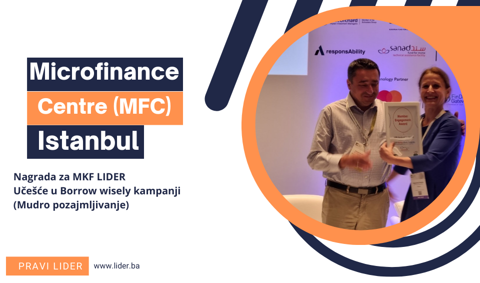 Na 24. Microfinance Centre (MFC) godišnjoj konferenciji koja se održavala od 29. do 30. juna 2022. u Istanbulu, direktoru Mikrokreditne fondacije LIDER, Džavidu Sejfoviću, uručena je prestižna nagrada za dugogodišnje aktivno učešće u Borrow wisely kampanji (Mudro pozajmljivanje).