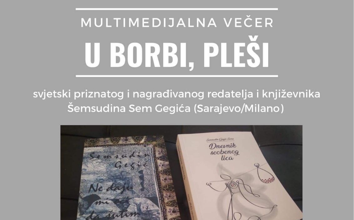 Multimedijalno veče U BORBI, PLEŠI, međunarodno priznatog i nagrađivanog redatelja i pisca Šemsudina Gegića će biti premijerno upriličeno u ambijentu plaže i šetnice Lungo Mare u Kleku, Dubrovačko-neretvanske županije u ponedjeljak, 1.avgusta u 21:30.