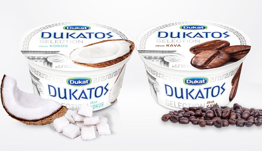 Dukatos Selection s okusom kave idealan je za sve one koji ne mogu zamisliti dan bez svog omiljenog napitka, dok će u svom grčkom tipu jogurta s okusom kokosa uživati svi koje raduju nadolazeći ljetni dani i visoke temperature.
