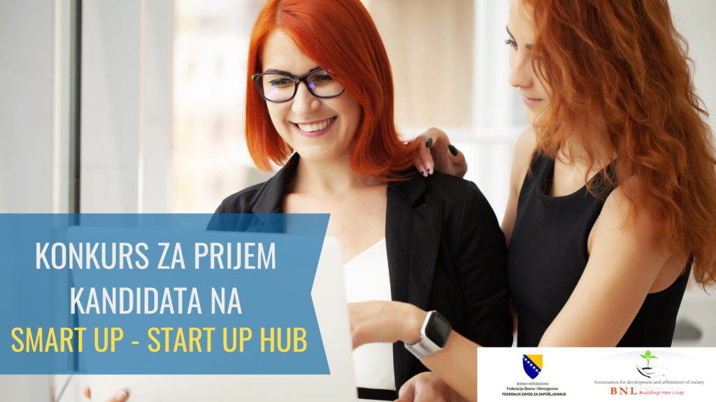 Udruženje za razvoj i afirmaciju društva Building New Lives u saradnji sa Federalnim zavodom za zapošljavanje poziva nezaposlene žene dobi od 35 – 45 godina starosti da se prijave na SMART UP-START UP HUB.