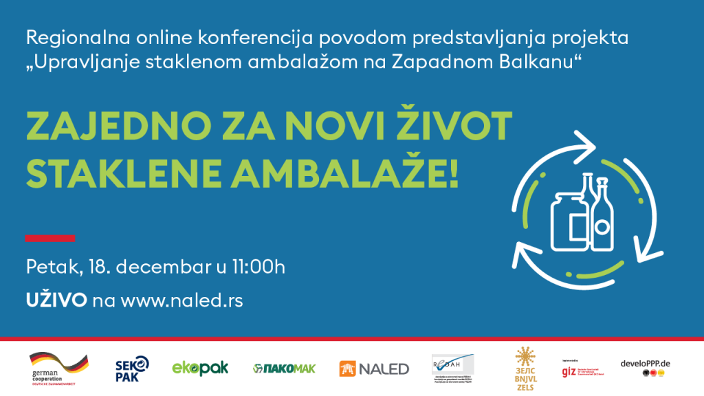 Regionalna online konferenciju za medije, koju organizuju Njemačka organizacija za međunarodnu saradnju – GIZ, Nacionalna alijansa za lokalni ekonomski razvoj „Naled“ iz Srbije i operateri ambalažnog otpada Ekopak (BiH), Sekopak (Srbija) i Pakomak (S. Makedonija) u okviru projekta „Upravljanje staklenom ambalažom na Zapadnom Balkanu“ održat će se u petak, 18.12.2020, 11:00-12:00h