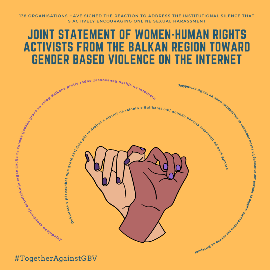 Mi, aktivistkinje za ženska prava iz regiona Balkana, solidarno podržavamo sve žene-žrtve digitalnog rodno zasnovanog nasilja, i tražimo od relevantnih institucija da reaguju u skladu sa svojim obavezama i ovlašćenjima, te temeljno i blagovremeno istraže slučaj grupa na društvenoj mreži Telegram (kao što su: Balkanska soba, Javna soba, GevgelijaHub, Srpska soba, Smokva itd.), kako bi počinioci bili kažnjeni, a žrtve zaštićene od dalje viktimizacije.