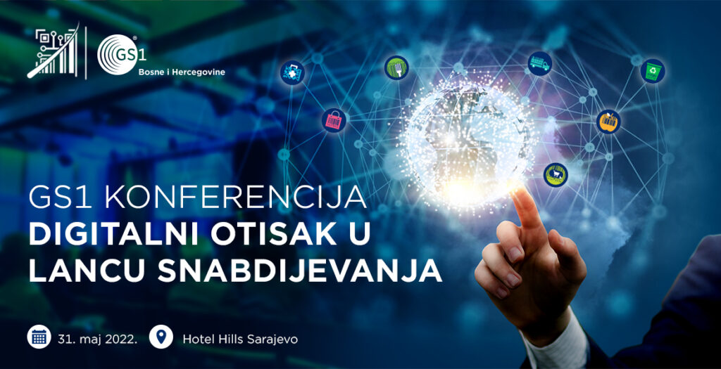 GS1 Bosne i Hercegovine organizira tradicionalnu 6. godišnju konferenciju GS1 pod nazivom „Digitalni otisak u lancu snabdijevanja“ koja će se održati 31. maja/svibnja 2022. godine.