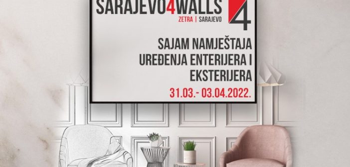 Međunarodni sajam namještaja, uređenja enterijera i eksterijera, tehnike i prateće industrije – SARAJEVO4WALLS održat će se od 31.03. do 03.04. u Sarajevu, u dvorani Zetra u Sarajevu. Ovo je jebilarno peto izdanje najvećeg i najznačajnijeg sajma namještaja u Bosni i Hercegovini kojeg je u posljednjoj godini održavanja posjetilo preko 28.000 posjetilaca. Ove godine, sajam će trajati 4 dana. Tako će na površini od preko 7000 m2 učestvovati preko 70 kompanija iz cijele BiH, Srbije, Hrvatske, Italije,