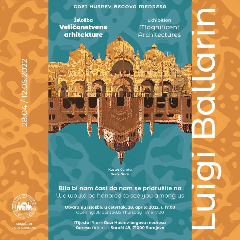 Po prvi put u Sarajevu, maestro Luigi Ballarin, inaugurirat će 28. aprila, u prisustvu ambasadora Italije, Marco-a Di Ruzza-e, izložbu “Veličanstvene arhitekture”, realiziranu u saradnji s udruženjem IKASD Istanbul Intercultural Art i Tabularasa Transnational Art.