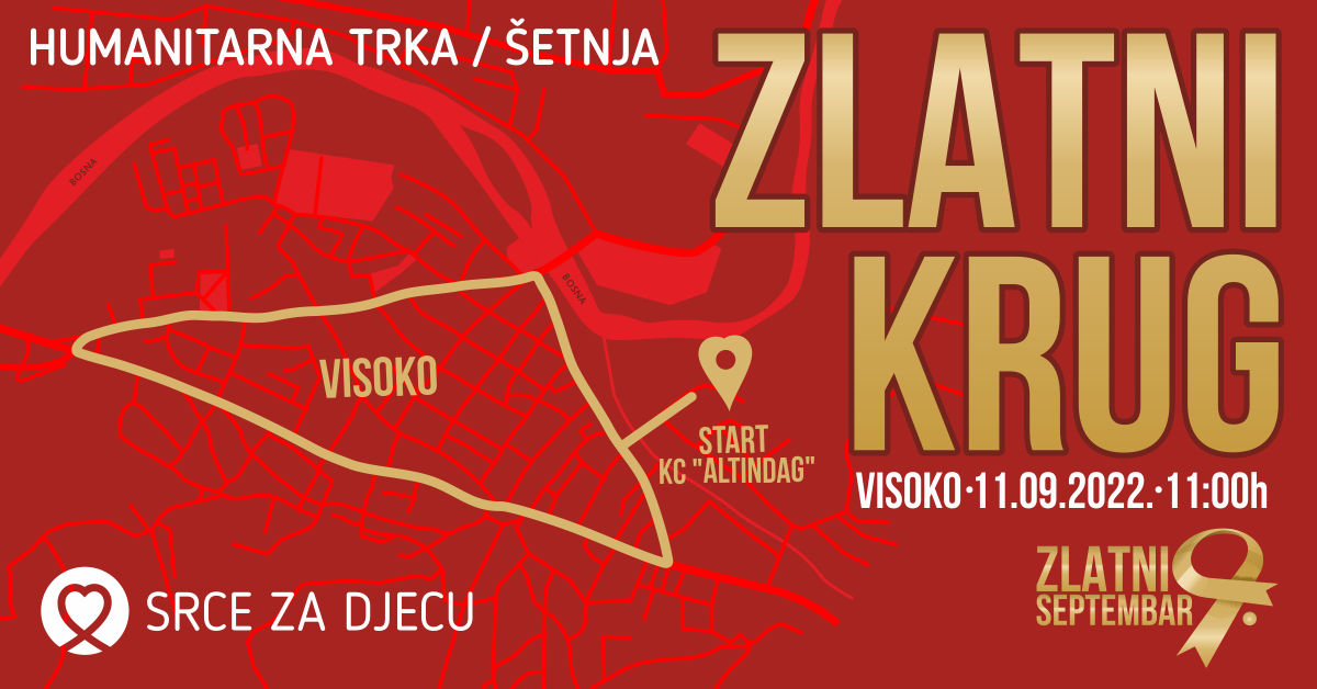 Centralni događaj desit će se 11.09.2022. godine u 11 sati u Visokom, gdje nas čeka humanitarna šetnja/trka „Zlatni krug“ u kojoj će imati priliku učestvovati svi građani BiH, ali i mnogi naši roditelji i djeca. Na ovaj način će svi imati priliku pružiti podršku i zajedno s nama pozlatiti ovaj septembar.
